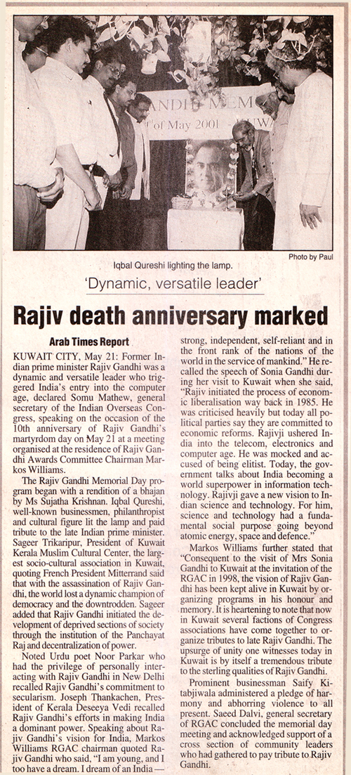 Rajiv Gandhi Memorial Day - 10th Anniversary: