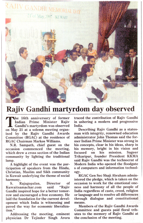 Rajiv Gandhi Memorial Day - 16th Anniversary: